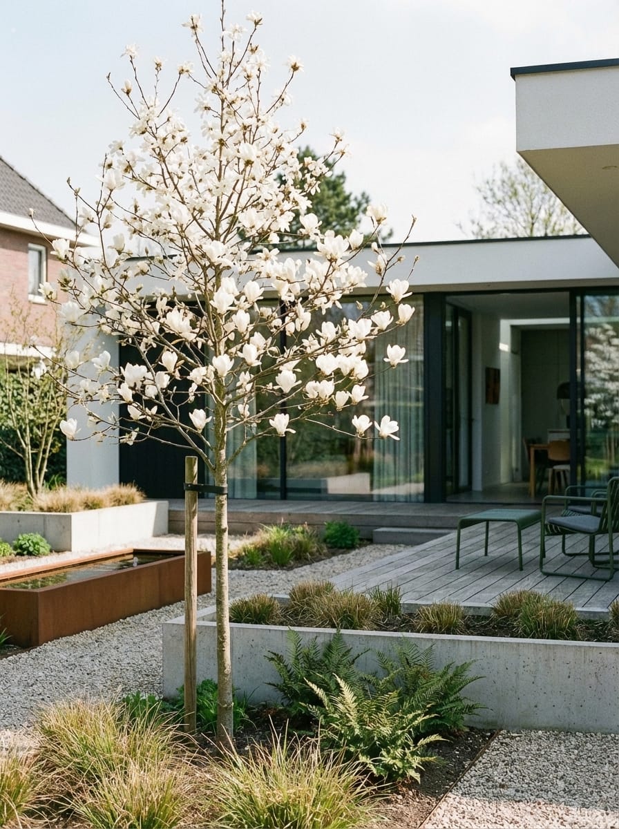 De Beverboom, ook bekend onder de Latijnse naam Magnolia kobus, is een prachtige boom die bekend staat om zijn volgroeide hoogte van ongeveer 15 meter. Deze boom valt in de categorie Laan en Sierbomen en heeft mooie witte bloemen die vooral in april volop bloeien. Het donkergroene blad zorgt voor een fris contrast met de witte bloemen en in de herfst kleurt het blad geel, waardoor de boom een echte eyecatcher wordt in de tuin.
